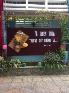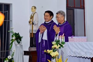 …và 17h00 Thánh Lễ Mừng Tân Linh Mục Vinh Sơn Lâm Văn Chí được long trọng diễn ra, trong ý lễ cùng cầu nguyện cho các em Khiếm Thính nhân dịp họp mặt Mừng Ngày Quốc Tế Người Khuyết Tật 3 tháng 12 tới. Hiện diện trong Thánh Lễ hôm nay có Cha Quản Hạt Tân Mai, Cha Giuse Trần Thanh Bình và Cha cựu Bề Trên Giuse, người giảng lễ.