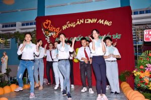 Sau Thánh Lễ là bữa tiệc mừng giản dị nhưng ấm cúng, Các em tỏ tấm lòng biết ơn Cha Mới qua các tiết mục văn nghệ, cảm động nhất là các Cựu học sinh múa bài “Bụi Phấn”.
