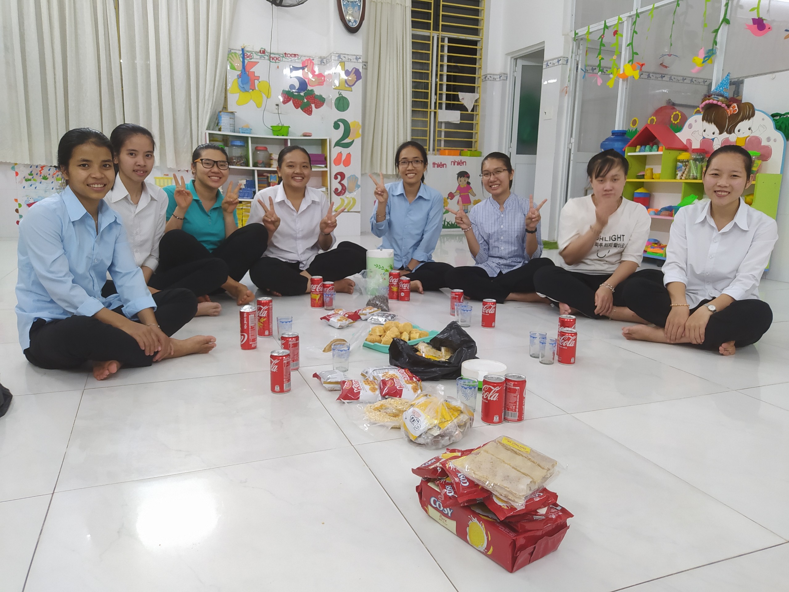 Tối đến, chị em chúng con có một bữa tiệc nho nhỏ để Welcome hai chị mới và Good-bye hai chị chuyển sang cộng đoàn Bình Hải để đi học chuyên môn. Vì dịch bệnh, nên đã lâu lắm rồi, chị em chúng con mới có dịp quây quần bên nhau, to nhỏ kể nhau nghe nhiều điều khi về thăm nhà trong dịp Tết.