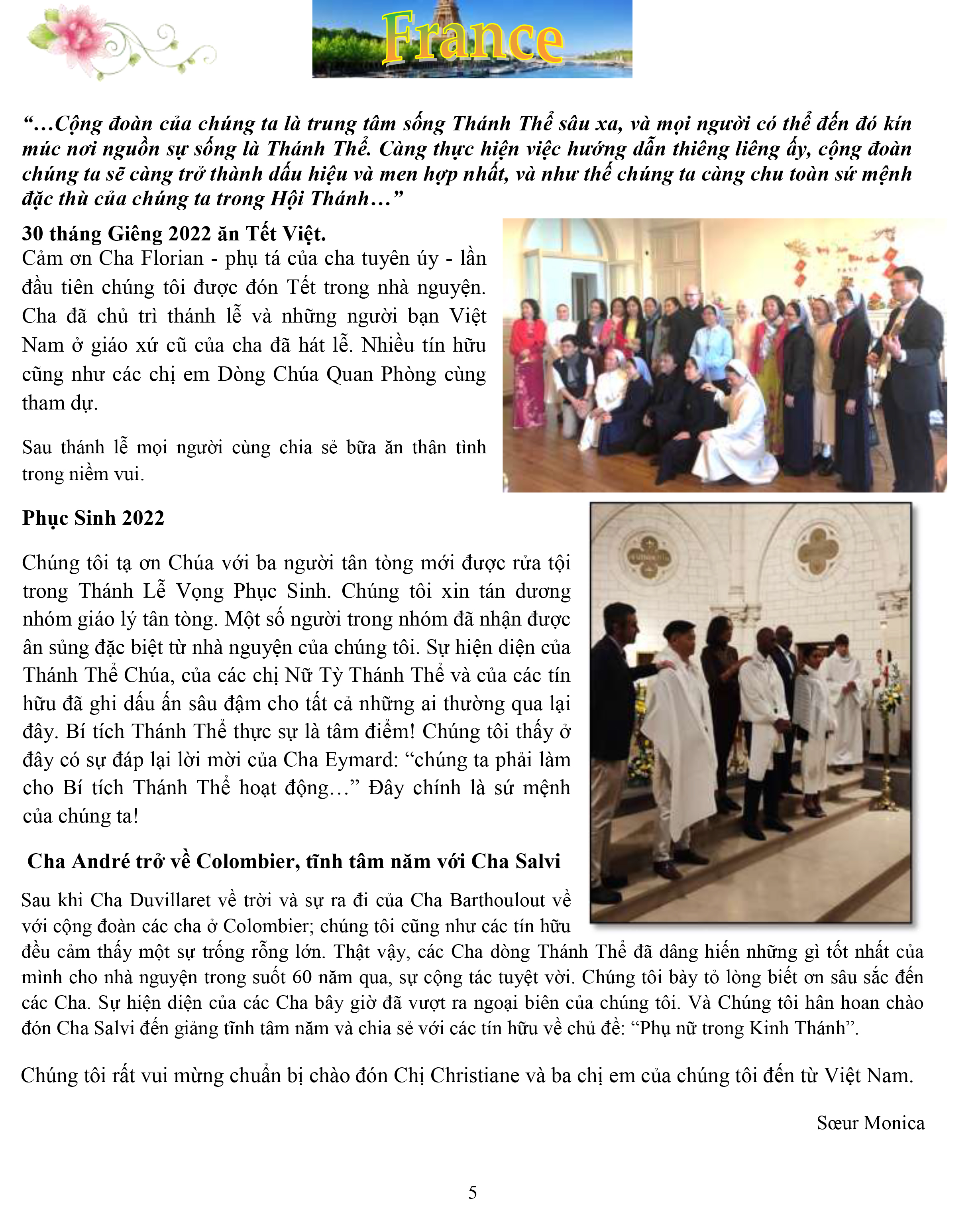 Chúc mừng Bổn mạng Cộng Đoàn Chàm Trẹt và Lớp Đồng…