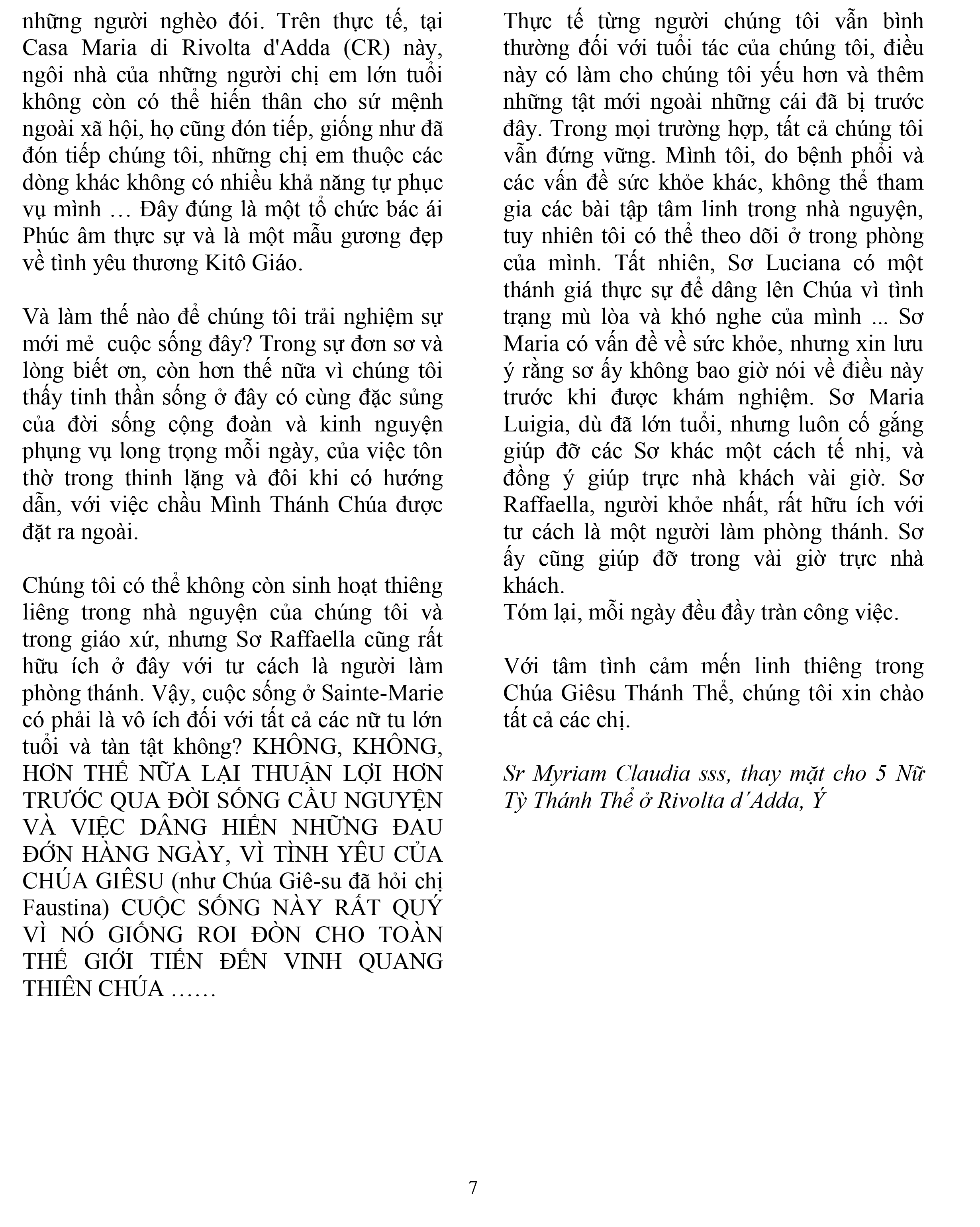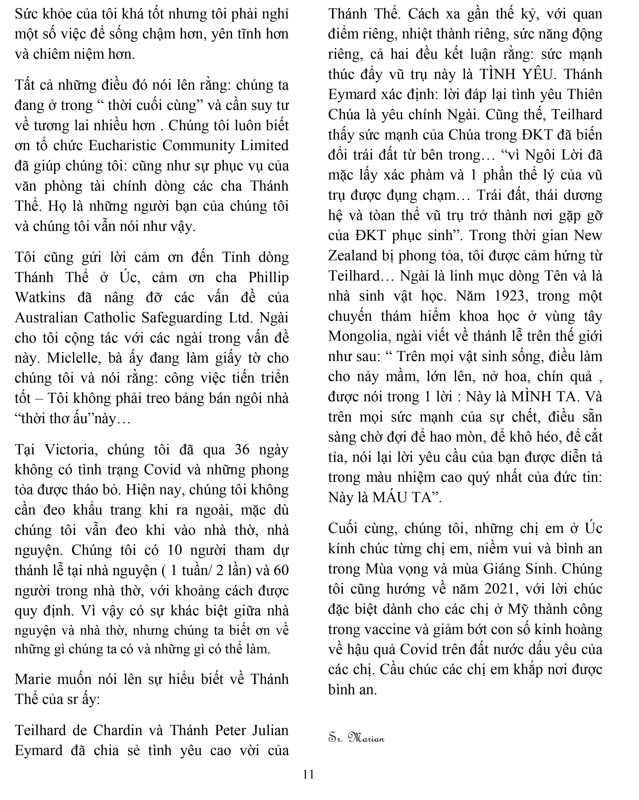 Chị Nữ tỳ Thánh Thể Canh tân lời nói để xây…