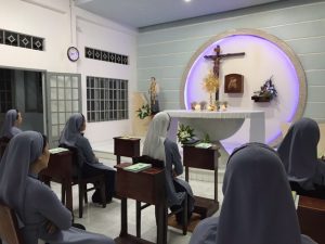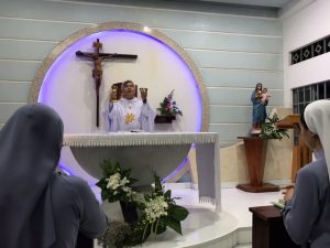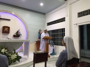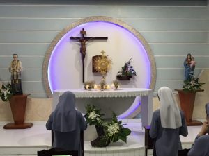 Ngày 17/01/2021, Cộng đoàn Nữ Tỳ Thánh Thể Tân Bình chúng con đã sum họp tạ ơn Chúa qua Thánh Lễ do Cha Chánh xứ cử hành trong bầu khí ấm áp của ngôi nhà nguyện nhỏ. Cùng với giờ Chầu đêm linh thiêng trước Chúa Giêsu Thánh Thể, chúng con nhìn lại một năm qua dù cho có nhiều biến cố chẳng lành như dịch bệnh Covid, nhưng Thiên Chúa vẫn luôn yêu thương gìn giữ chúng con bình an. Đồng thời chúng con cũng dâng Năm mới, dâng Cộng đoàn, dâng quê hương và dâng cả thế giới lên Chúa, để khẩn cầu Chúa yêu thương che chở, cứu giúp, chữa lành.