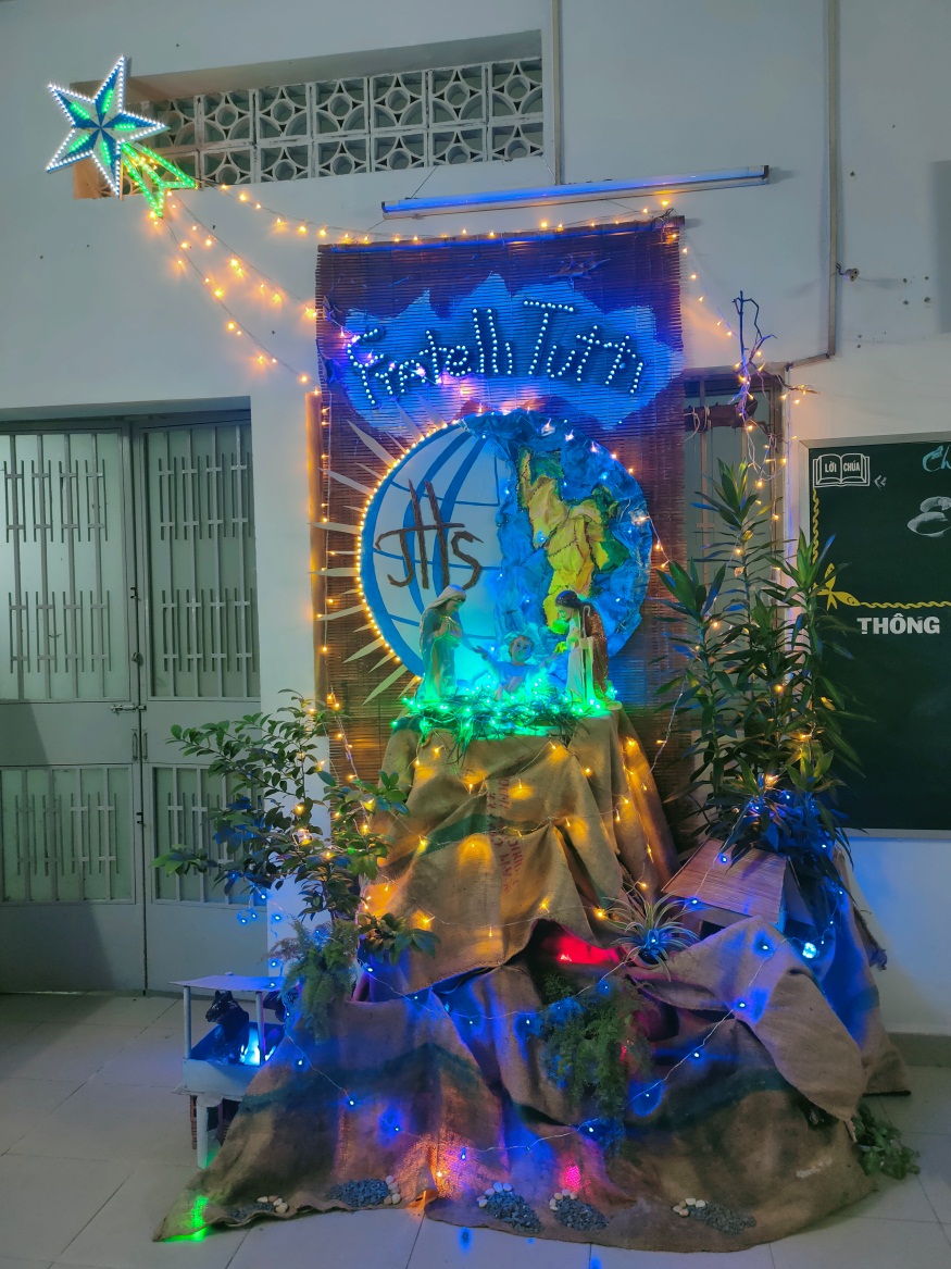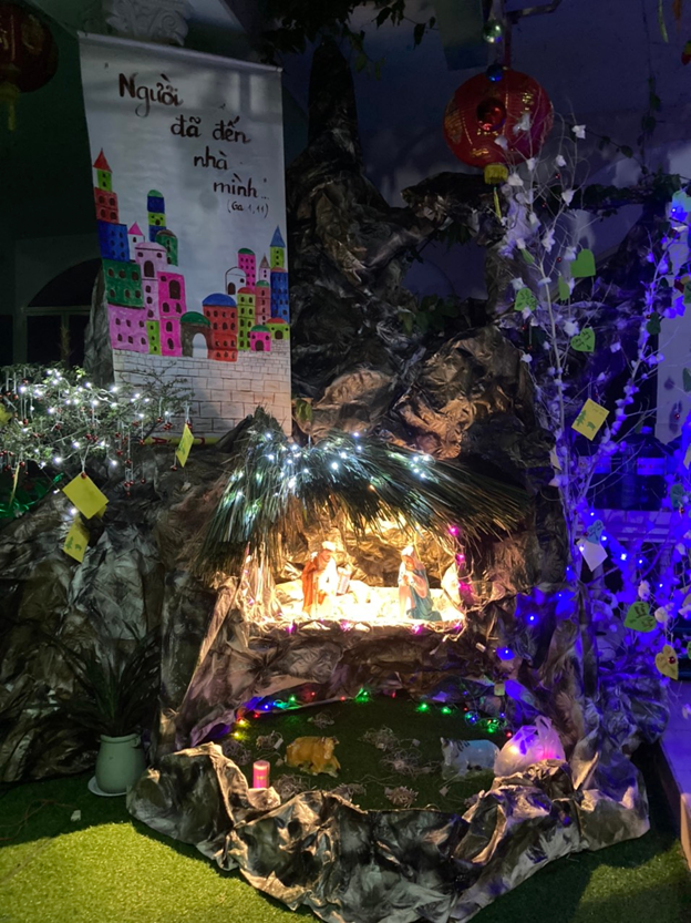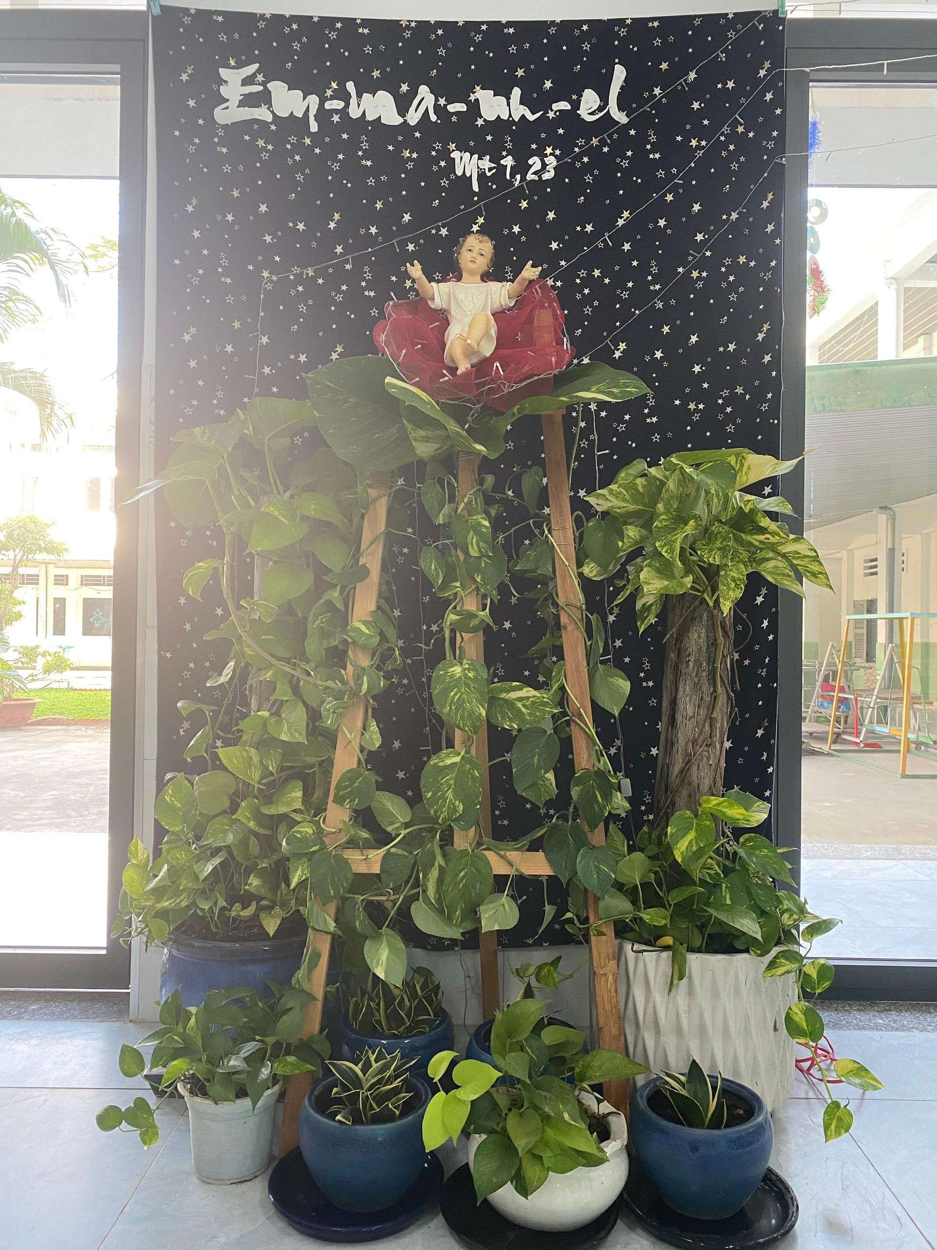 Năm nay hang đá nhỏ của chúng mình trang trí cây xanh với ý: Xin Chúa Hài Nhi cho mọi người biết yêu thiên nhiên và bảo vệ môi trường XANH – SẠCH – ĐẸP nhé !