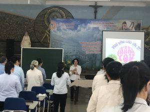 Sơ Anna đã cho chị em làm bài tập để nhìn lại hành trình đời mình qua mô hình Career Rainbow -Cầu vồng sự nghiệp và Career Diamond để khám phá về hành trình đời tu của mình.