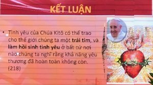 Đức Cha Đaminh đã kết luận: Trong Trái Tim Chúa Giêsu, chúng ta nhận ra chính mình và học cách yêu thương theo khuôn mẫu của Chúa. Càng khám phá ra kinh nghiệm cá nhân tình yêu của Chúa, chúng ta sẽ học được cách yêu thương và ta biết soi rọi đời sống của mình. Bằng cách gặp gỡ tình yêu của Chúa Kitô, “chúng ta có khả năng dệt nên những mối dây huynh đệ, nhận ra phẩm giá của mỗi con người và cùng nhau chăm sóc ngôi nhà chung của chúng ta.”(217) “Tình yêu của Chúa Kitô có thể trao cho thế giới chúng ta một trái tim, và làm hồi sinh tình yêu ở bất cứ nơi nào chúng ta nghĩ rằng khả năng yêu thương đã hoàn toàn không còn.”(218)