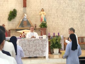 Trước khi ra về, gia đình Tu sĩ chia sẻ với nhau bữa ăn huynh đệ chan chứa niềm vui, để tiếp tục lên đường thi hành sứ vụ đem lửa tình yêu đến với những anh chị em mà chúng con gặp gỡ.