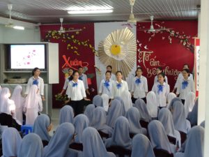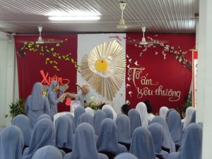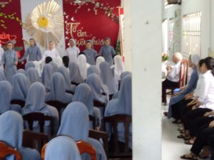Tiếp theo chị em vào nhà hội để chúc tết cha Giuse và cùng chúc tết nhau.