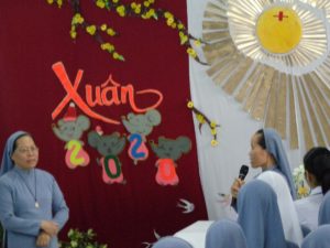 Sau báo cáo, chị em chúc tuổi mới cha Giuse, chị Giám tỉnh… Ba chị tại cộng đoàn nước ngoài vừa về thăm cộng đoàn, cũng chia sẻ một chút về cuộc sống của chị em tại nơi các chị phục vụ. Xen lẫn là những tiết mục văn nghệ. sau đó chị em xuống phòng cơm để cùng nhau thưởng thức bữa buffet là các món ăn do chị em các cộng đoàn xa gần mang về góp phần.