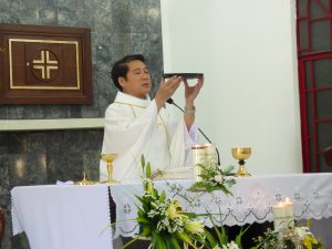 Đúng 8g30, Thánh Lễ được cha Vinh Sơn-Quản Hạt Tân Mai cử hành thật sốt sắng. Đầu lễ, cha mời gọi cộng đoàn phụng vụ cùng chung tâm tình tạ ơn Chúa với Mẹ Maria và cầu xin ơn bình an cho Thế giới, cho quê hương, cho mỗi gia đình và mỗi người. Đặc biệt cầu nguyện cho các cháu trường khiếm thính hôm nay mừng lễ.