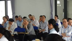 Tu nghị cộng đoàn kết thúc vào khoảng 12g00, chị em vào nhà cơm vừa dùng cơm vừa chuyện trò vui vẻ. Tạ ơn Chúa vì chúng tôi đã có một buổi ngồi bên nhau để duyệt xét lại ba năm làm việc của mỗi người nói riêng và của từng ban ngành nói chung. Xin Chúa giúp chúng con tiếp tục sống tròn đầy đặc sủng và linh đạo Thánh Thể mà Chúa đã ban, xin cho chúng con biết giữ gìn cũng như làm tỏa sáng ra cho mọi người chung quanh hầu có thêm nhiều người nhận biết, yêu mến và đến với Chúa Giêsu Thánh Thể .