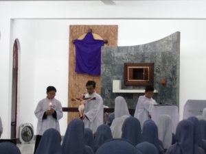 Và như thường lệ hàng năm, đến hẹn lại lên. Chị em Nữ tỳ Thánh Thể lại bắt đầu tuần lễ đặc biệt này Vào Chúa Nhật Lễ Lá, và mọi diễn tiến tuần tự như mọi năm….