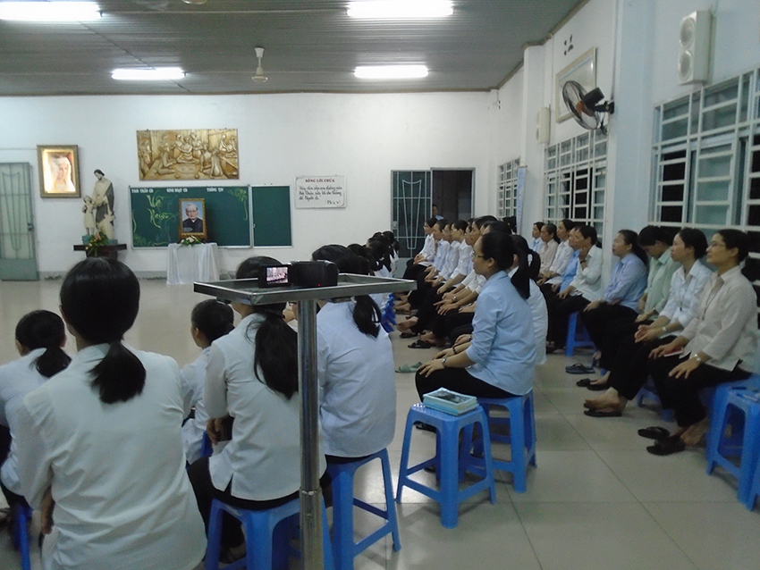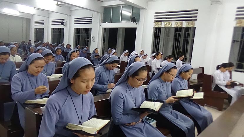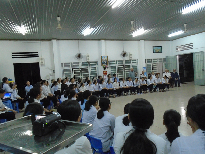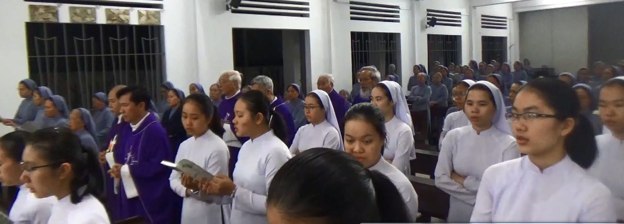 Hôm nay cha muốn chia sẻ với chị em, chị em muốn trở nên chị nữ tu Thánh Thể thì chị em phải học ở nơi Đức Giêsu sự khiêm nhường: thứ nhất là khiêm nhường, thứ hai là khiêm nhường và thứ ba cũng là khiêm nhường. Khiêm nhường thì đặt mình ở vị trí rốt hết, nó thấp không còn có gì thấp hơn. Khi bề trên cắt đặt chị này, chị kia làm công việc này việc nọ xem ra sáng giá, được nhiều người biết tới, còn mình thì âm thầm không ai biết đến. Thì đừng buồn, các con hãy ví mình như là một chiếc giẻ rách, chiếc giẻ rách ấy người ta còn có thể dùng để mà lau tay, người thợ sửa xe có thể dùng để lau nhớt, chùi dầu.. Khi đặt mình ở vị trí tận cùng rồi thì chiếc giẻ rách không còn làm gì hơn được nữa, nó có gì mà vênh vang, có gì mà tự kiêu, có gì mà cảm thấy tủi. Cho nên chị em hãy chọn phần thấp kém ở trong cộng đoàn, làm những công việc âm thầm để chị em khác không biết, nhưng mà Chúa biết.