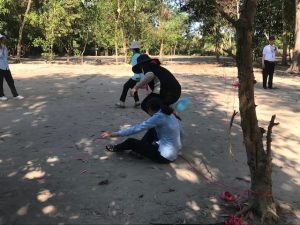 Khởi đầu của ngày trại là mỗi chị em chúng con cùng nhau đi qua những chướng ngại, tiếp đến là cả đội cùng nhau đặt tay lên sách Tin Mừng để nhờ Lời Chúa hướng dẫn, sau đó là nhận chiếc khăn quàng:” để được huấn luyện trở nên giống Đức Kitô hơn” qua những nghi thức khởi đầu như thế mỗi chị em chúng con đã nhận cho mình bài học của sự khiêm tốn. hy sinh, phục vụ để từ nay chúng con biết cố gắng trở nên giống Chúa hơn.