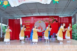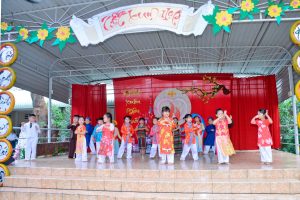 Bàn tiệc Thánh Thể được tiếp nối trong bữa tiệc tất niên buffet thật thú vị, được xen lẫn những tiết mục văn nghệ mừng xuân vui tươi dí dỏm của các cháu Khiếm thính, các cháu mầm non, các em dự tu, tập sinh và học viện. Hấp dẫn không kém là mục rút số bốc quà cho tất cả mọi người.
